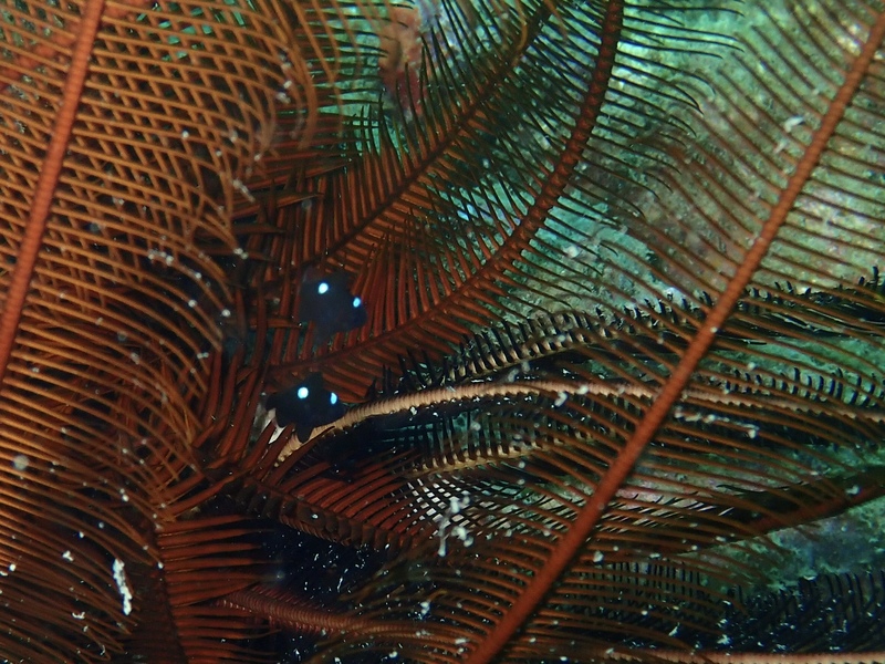 ウミシダに隠れるミツボシクロスズメダイなどか見れました〜