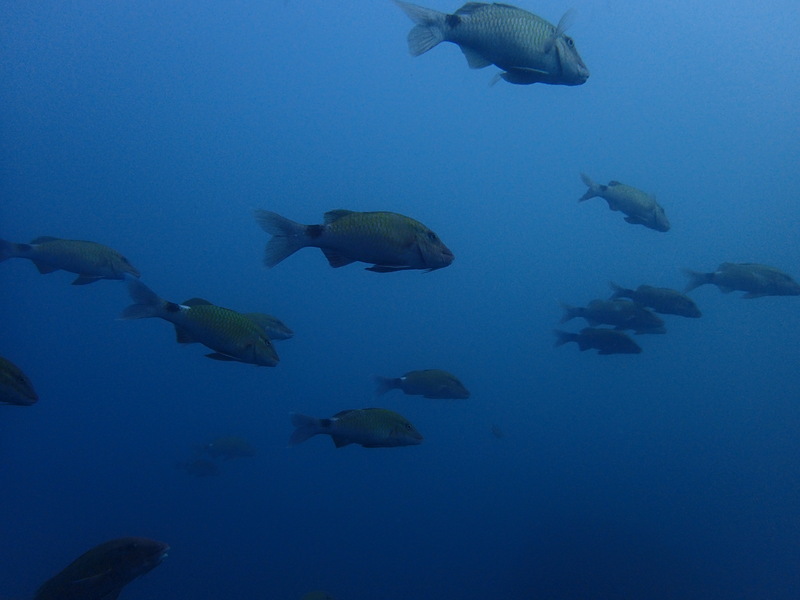 ホウライヒメジの群れも中層を泳いで快適そうです!(笑)