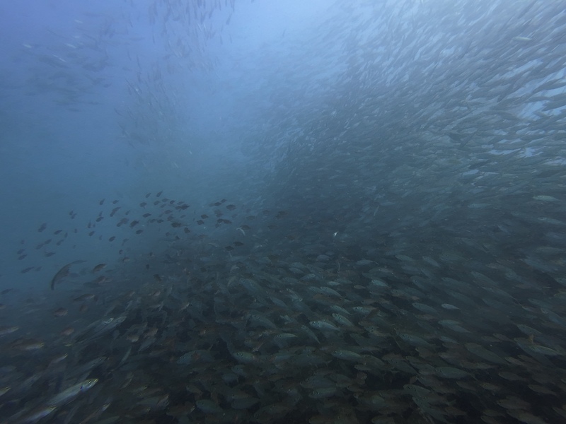 前を泳ぐダイバーが見えなくなるほどの魚影の濃さ!